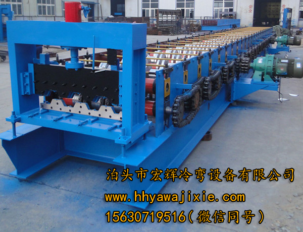 688樓承板成型機采用.液壓驅(qū)動,成型后自動尺切斷,不變形,無廢料,安全系數(shù)較高(主機停切斷)。